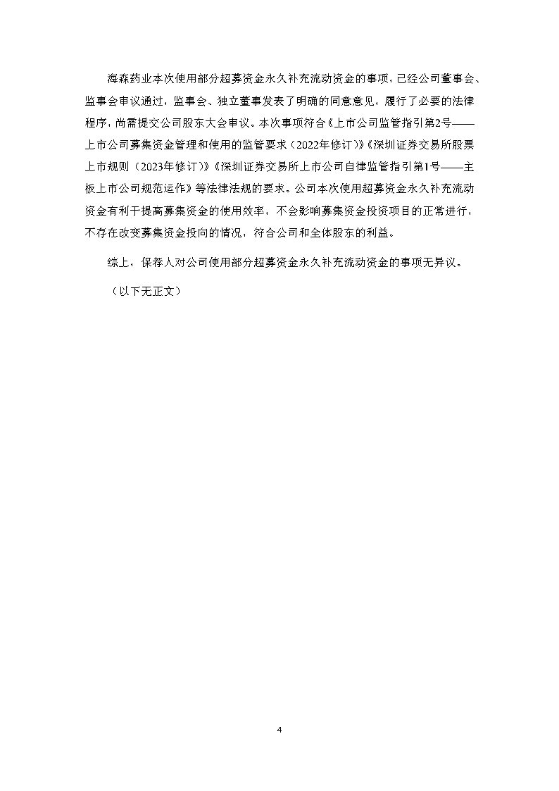 中信證券股份有限公司關(guān)于浙江海森藥業(yè)股份有限公司使用部分超募資金永久補(bǔ)充流動(dòng)資金的核查意見