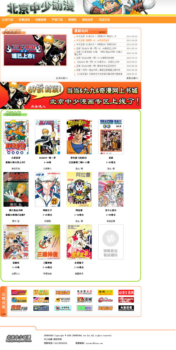 公司自創(chuàng)建以來(lái),積極與國(guó)表里各大出書(shū)社相助。如今正在運(yùn)營(yíng)的書(shū)刊有數(shù)百種,此中《火影》(首印10萬(wàn)套,上市月余即加?。?、《龍珠》(上市三年銷(xiāo)量近千萬(wàn)冊(cè))、《鋼之煉金術(shù)師》、《網(wǎng)球王子》、《圣斗士》(已經(jīng)再版多次)、《水果籃子》、《阿拉蕾》、《三眼神童》、《龍狼傳》以及海內(nèi)最高程度的原創(chuàng)作品“四臺(tái)甫著”等多部漫繪圖書(shū)深受讀者接待,市場(chǎng)回聲極其火爆。