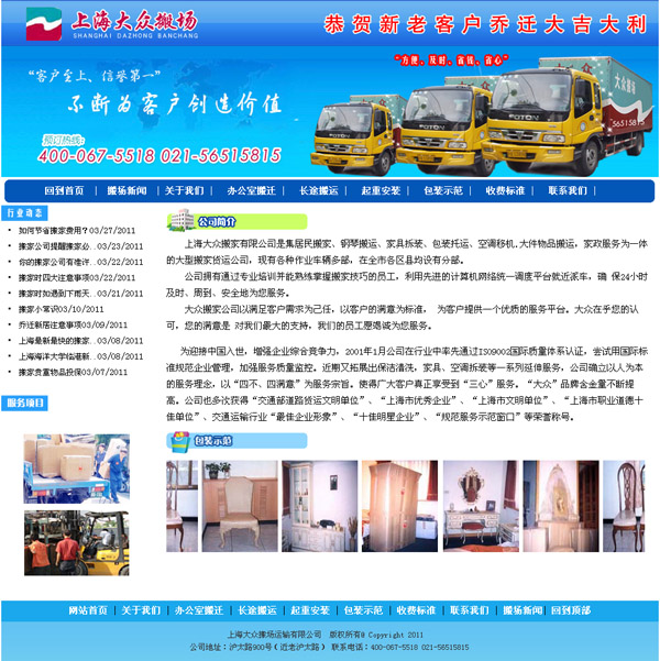 大眾搬家公司以滿足客戶需求為己任,以客戶的滿足為尺度, 為客戶提供一個優(yōu)質的服務平臺。大眾在乎您的承認,您的滿足是 對我們最大的支持,我們的員工愿竭誠為您服務。