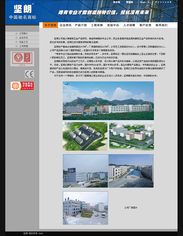 堅(jiān)朗生產(chǎn)基地占地面積超過25萬M2,廠房面積超過20萬M2。公司員工總數(shù)超過5000人,技能管理職員數(shù)目超過500人。公司產(chǎn)物遠(yuǎn)銷100多個(gè)國度和地域,在國表里設(shè)有多個(gè)販賣服務(wù)機(jī)構(gòu)。
