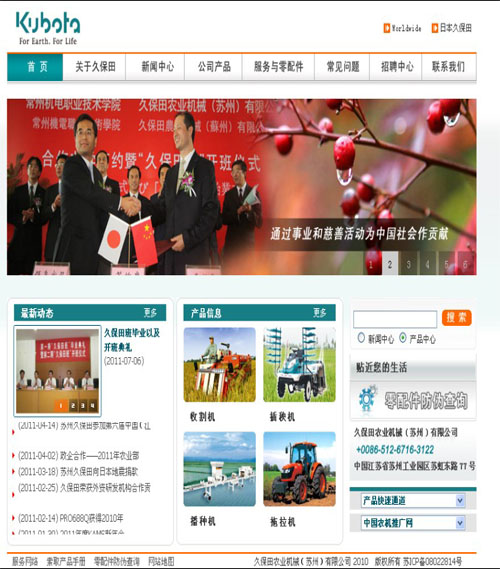 久保田集團(tuán)介紹:日本株式會(huì)社久保田創(chuàng)立于1890年,作為日本最大的農(nóng)機(jī)制造商,長(zhǎng)期以來(lái)在“水”、“土”、“環(huán)境”、“城市”、“居住”等與人類(lèi)生活和文化息息相關(guān)的五大事業(yè)領(lǐng)域中,不斷開(kāi)發(fā)符合時(shí)代要求的先進(jìn)技術(shù)和產(chǎn)品,為人類(lèi)富裕美好的生活積極創(chuàng)造基礎(chǔ)。目前在農(nóng)業(yè)機(jī)械(聯(lián)合收割機(jī)、插秧機(jī)、拖拉機(jī))、小型建機(jī)、小型柴油發(fā)動(dòng)機(jī)、鑄鐵管等領(lǐng)域處于世界前列。