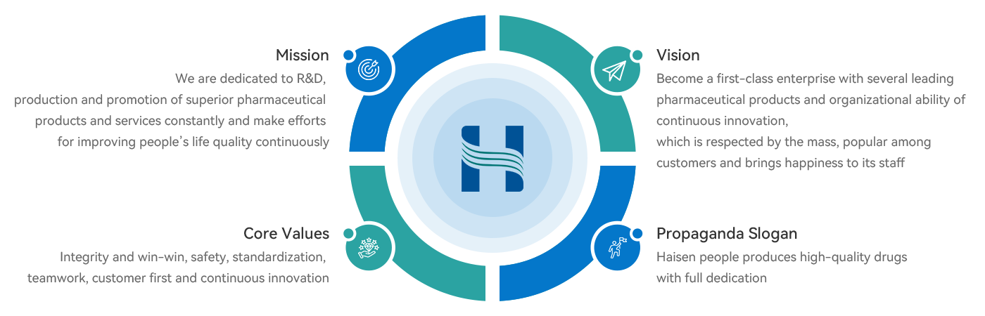 To address its development vision of “becoming a first-class enterprise with several leading pharmaceutical products and organizational ability of continuous innovation, which is respected by the mass, popular among customers and brings happiness to its staff”, the Company strives to shoulder its holy mission of “being dedicated to R&D, production and promotion of superior pharmaceutical products and services constantly and making efforts for improving people’s life quality continuously”.