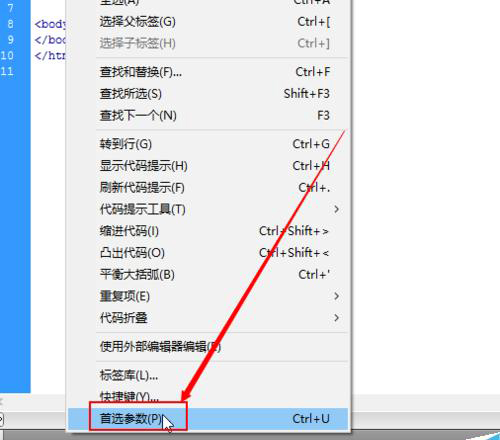 然后再?gòu)棾龅南吕藛沃羞x擇“首選參數(shù)”這個(gè)菜單選項(xiàng)。
