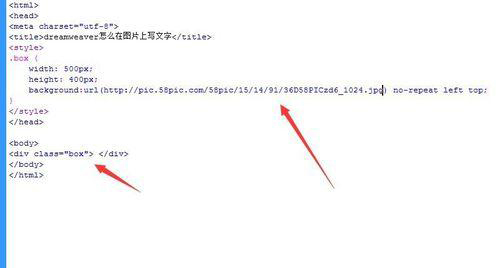 4、在代碼中定義一個div,要寫上寬度和高度,最好是與圖片寬高相等。然后將圖片作為div的背景插入。