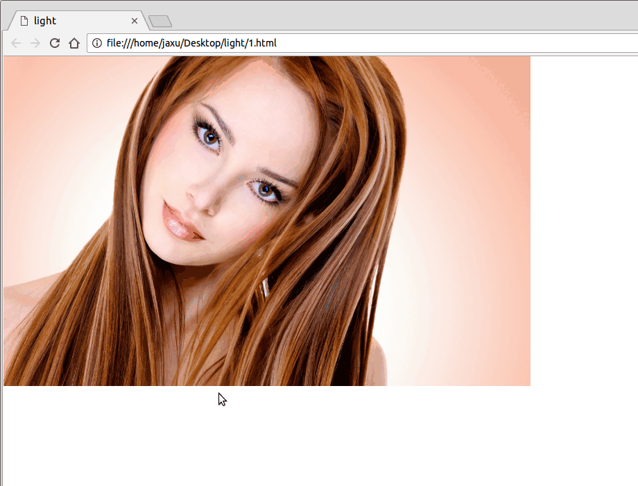 <!DOCTYPE html> <html lang="en"> <head> <meta charset="UTF-8"> <title>light</title> <style> body{ margin: 0; } a.floor{ display: block; height: 475px; } a.floor:hover:before{ -webkit-transition: left 1.5s; -moz-transition: left 1.5s; transition: left 1.5s; left: 920px; } a.floor:before{ content: ""; position: absolute; width: 80px; height: 475px; top: 0; left: -150px; overflow: hidden; background: -moz-linear-gradient(left,rgba(255,255,255,0)0, rgba(255,255,255,.2)50%,rgba(255,255,255,0)100%); background: -webkit-gradient(linear,left top,right top,color-stop(0%,rgba (255,255,255,0)),color-stop(50%,rgba(255,255,255,.2)),color-stop(100%,rgba(255,255,255,0))); background: -webkit-linear-gradient(left,rgba(255,255,255,0)0, rgba(255,255,255,.2)50%,rgba(255,255,255,0)100%); background: -o-linear-gradient(left,rgba(255,255,255,0)0, rgba(255,255,255,.2)50%,rgba(255,255,255,0)100%); -webkit-transform: skewX(-25deg); -moz-transform: skewX(-25deg); } </style> </head> <body> <a class="floor" href="javascript:;"> <img src="images/girl.jpg" height="475" width="760" alt=""> </a> </body> </html>
