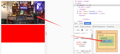 這時候在chrome谷歌瀏覽器中調(diào)試效果,發(fā)現(xiàn)圖片寬度變成了980px,然后各種算rem算不對,
